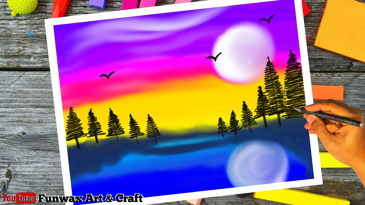 How To Draw A Scenery With Oil Pastel Easy Tutorial Drawings Oil Pastel Art Drawings For Kids