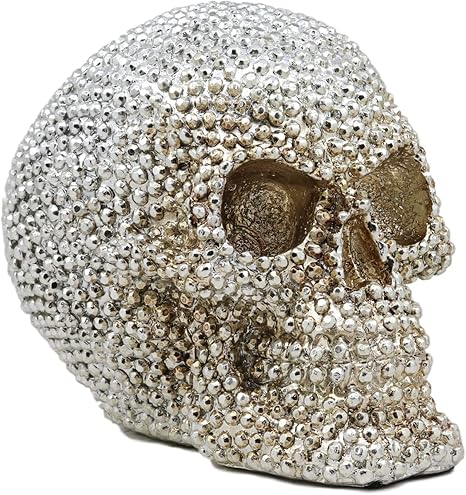 Amazon Com Ebros Gift Realistic Chrome Silver Bead Stone Bling Skull Figurine 6 25 Long Decorative Collectible Gemstone Replica Skulls Halloween Macabre Graveyard Spooky Decor Theme Day Of The Dead Sculpture Home
