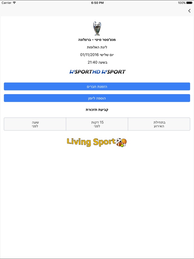 Living Sport לוח שידורי ספורט חיים מכל ענפי הספורט On The App Store