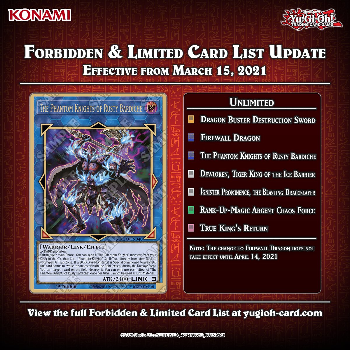 September 14th 2020 Limited Forbidden List For The TCG. Periodically Konami updates the Yugioh banlist to shake things up and force players to re-make their decks.